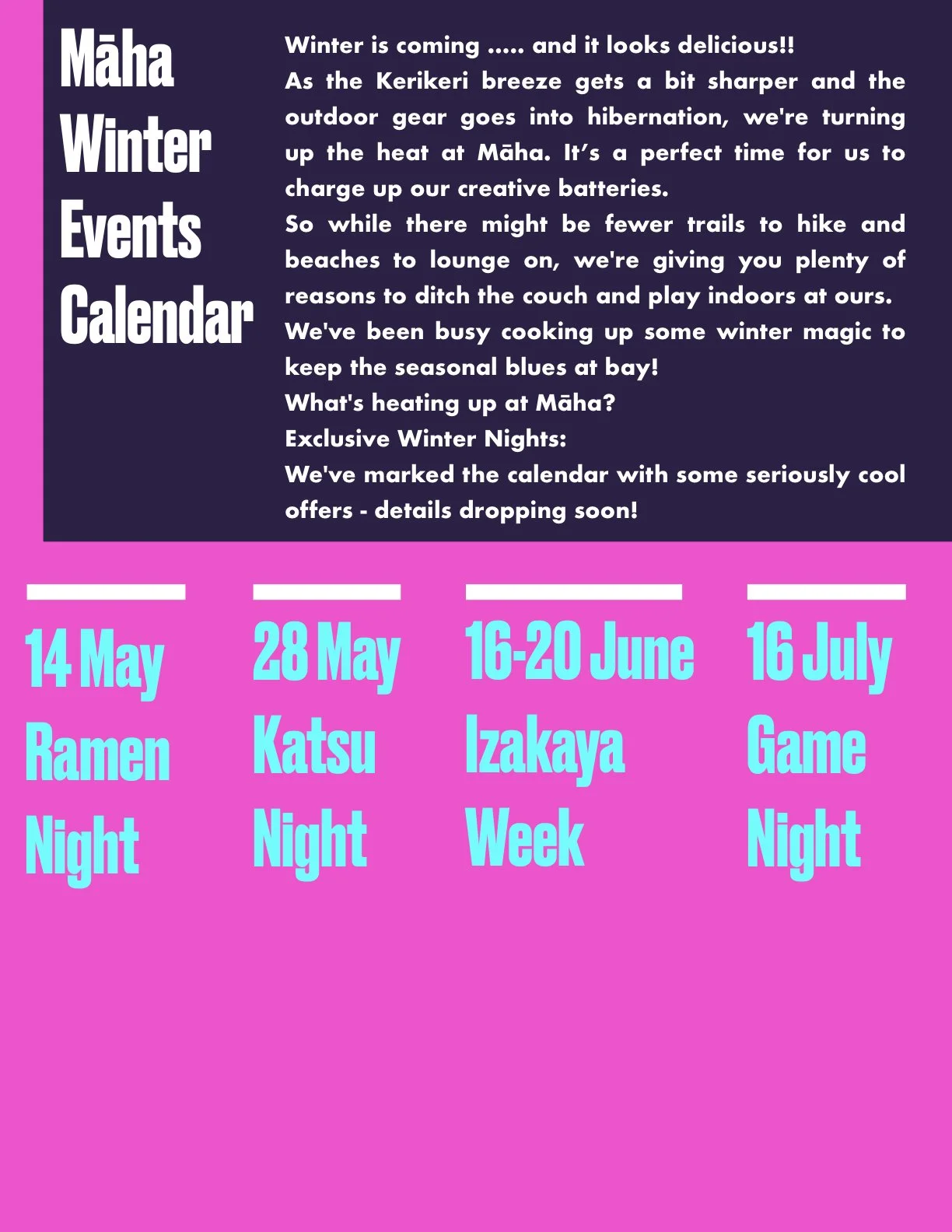 If you’d like to be kept informed about Māha news and special events please click on the button below!