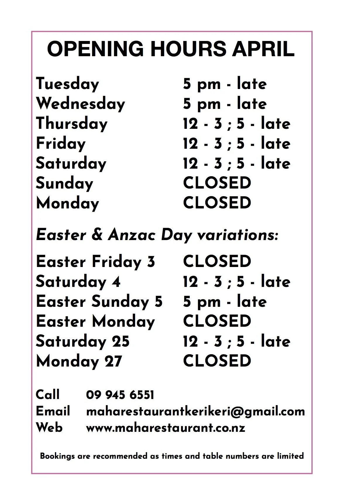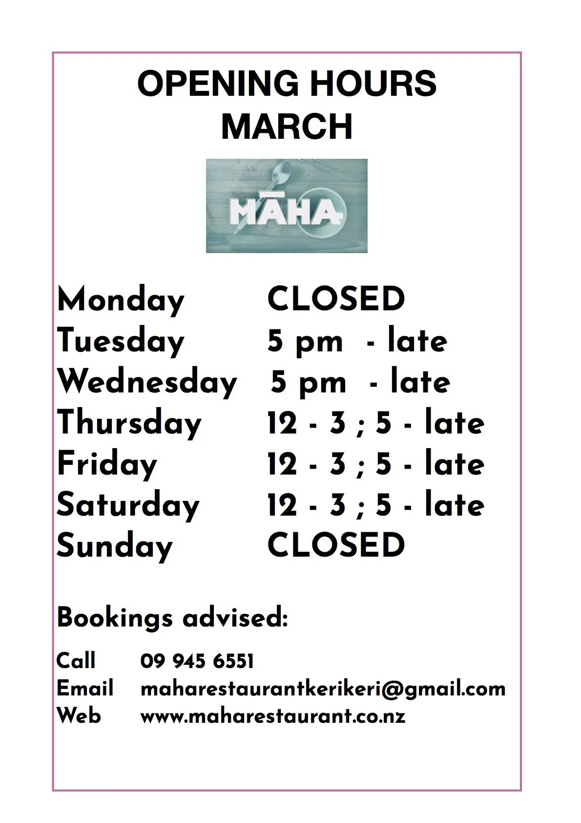 Email: maharestaurantkerikeri@gmail.com